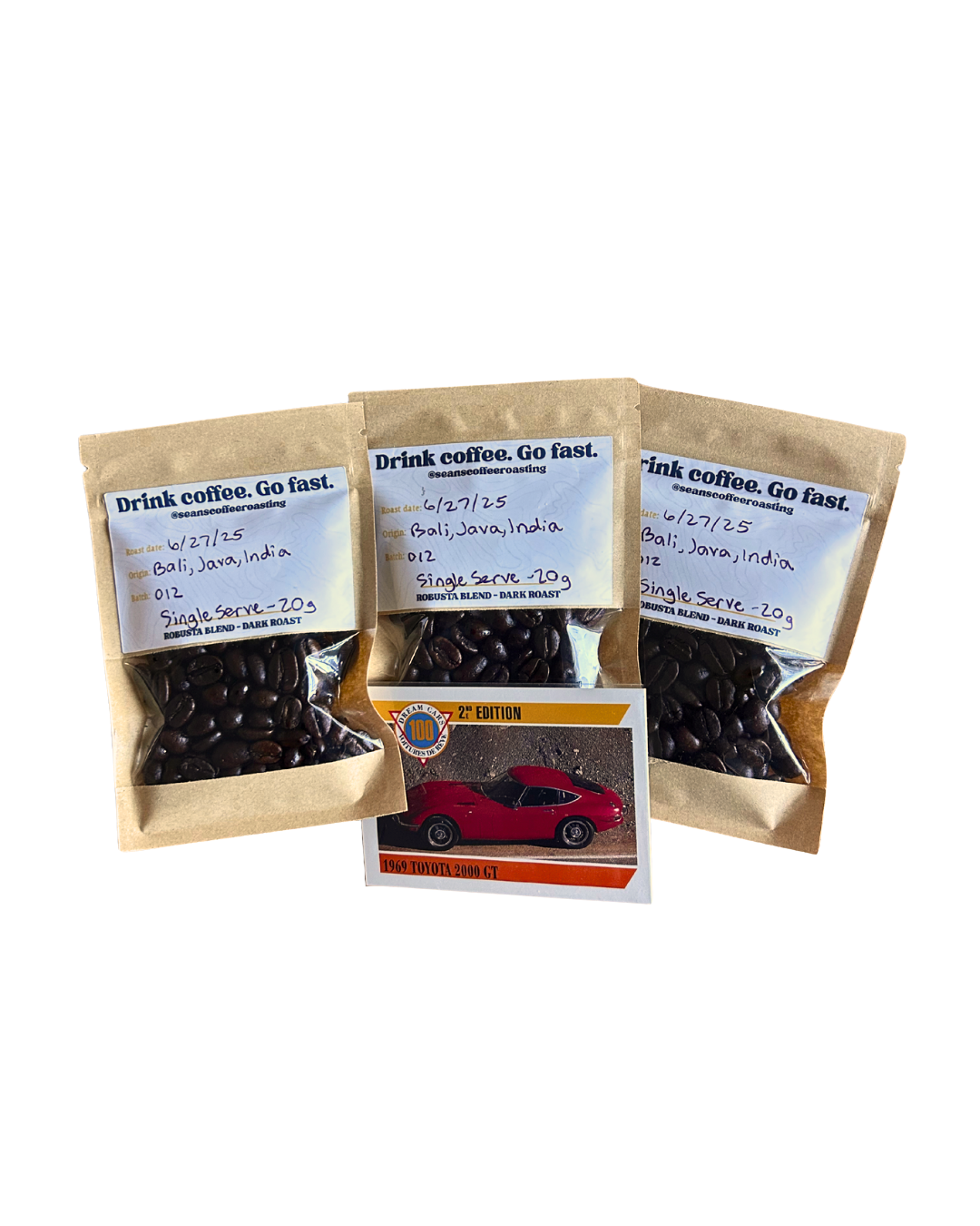 Enjoy the RACE FUEL blend in 3 pre-weighed 20g packs. Perfect to bring with you for a weekend getaway or just as a sample before purchasing a full bag.