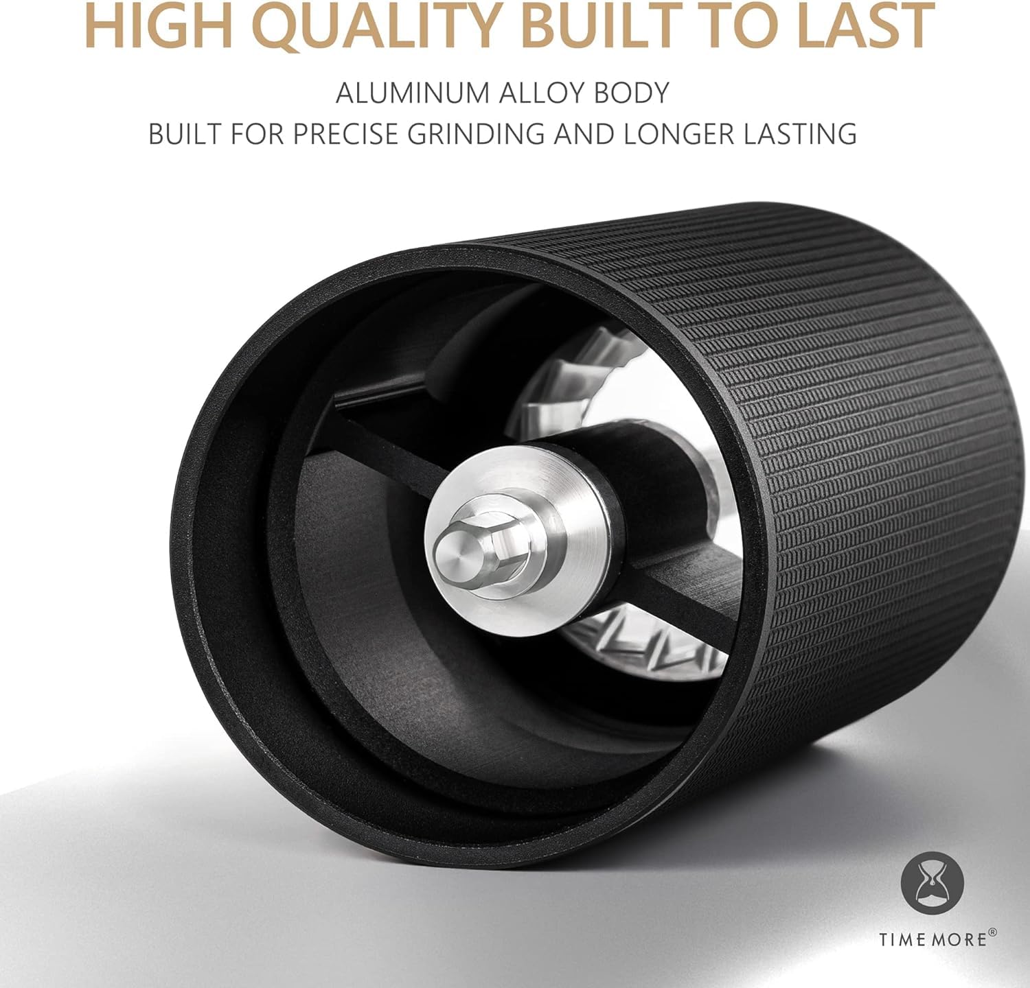 - [ Durable Manual Coffee Grinder ] TIMEMORE C2S hand coffee grinder upgraded to full metal unibody(with no plastic part inside), It is made of CNC machining stainless steel conical burr. Double bearing central axis positioning-uniform grinding particles. Burr size 38 mm-efficient grinding of coffee beans